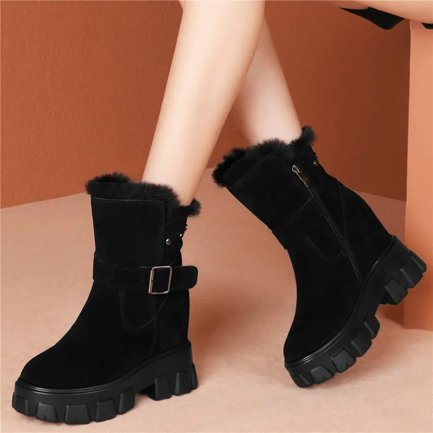 Hidden Wedge Winter Fashion Sneakers Women Genuine Leather High Heel Snow Boots Rabbit Fur Platform