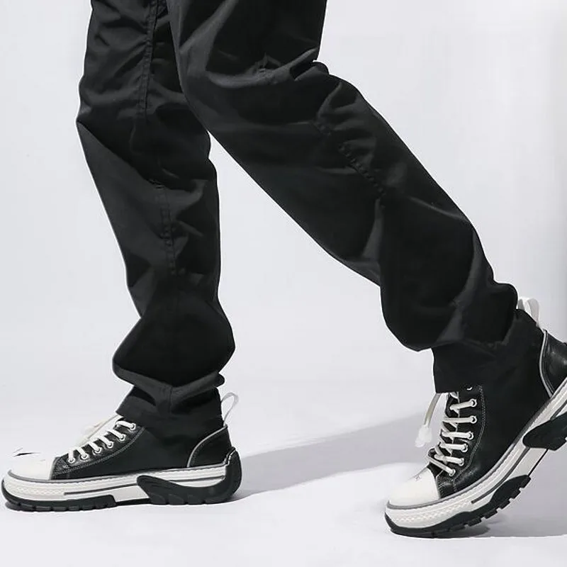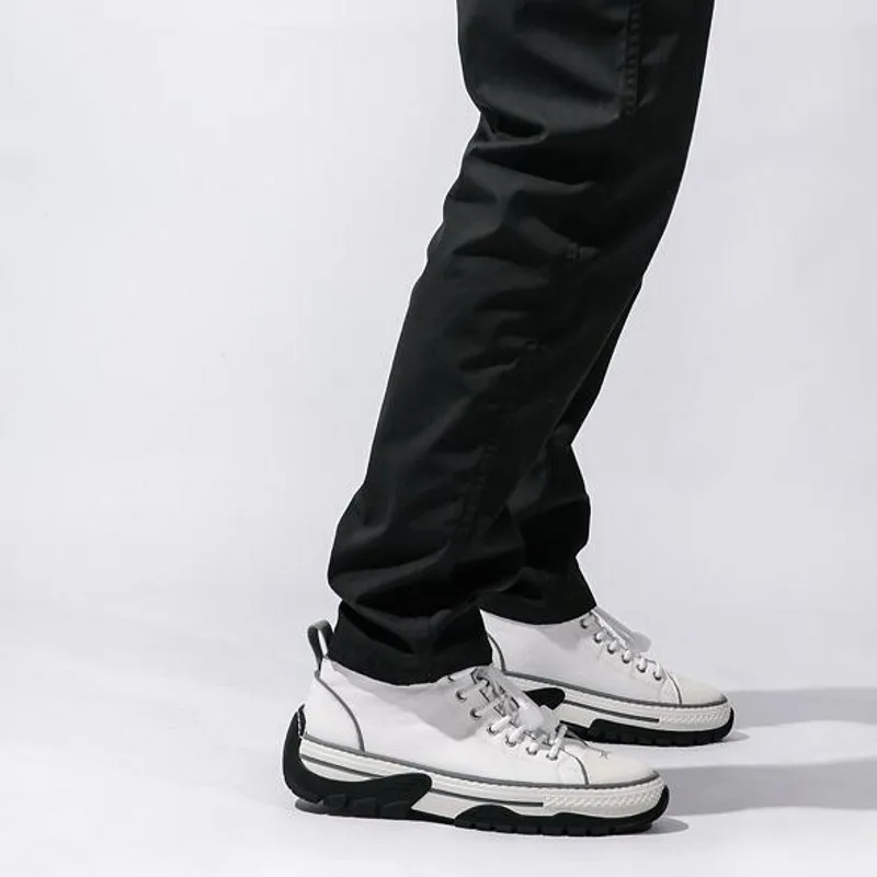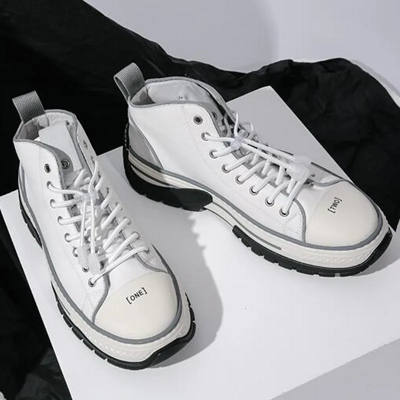Hip Hop British High Top Genuine Leather Mens Casual Shoes Fashion New Corss Tied Round Toe Thick B